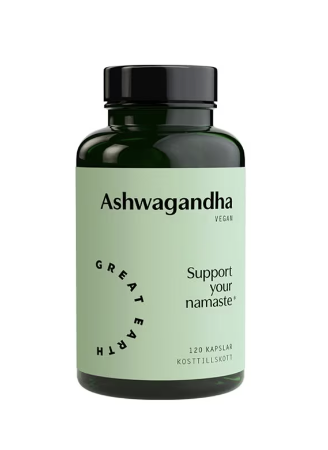 Ashwagandha, även känd som indisk ginseng, är en adaptogen ört med lång tradition inom ayurvedisk medicin. Great Earth Ashwagandha innehåller 300 mg högkvalitativt rotextrakt per kapsel. Den är helt vegansk och har kompletterats med pantotensyra (vitamin B5) som bidrar till normal mental prestationsförmåga och till att minska trötthet och utmattning. För att ytterligare främja upptaget innehåller produkten Bioperine®, ett extrakt av svartpeppar.
