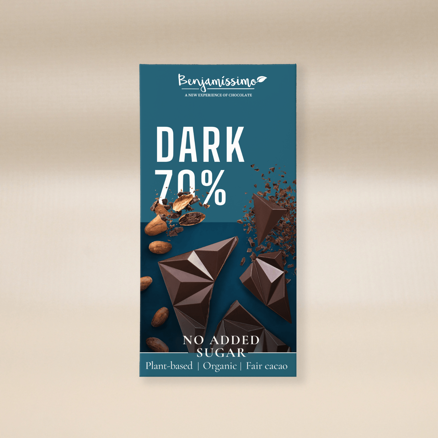 BENJAMISSIMO DARK 70% PLANT BASED ORGANIC CHOCOLATE 60G NO SUGAR ADDED