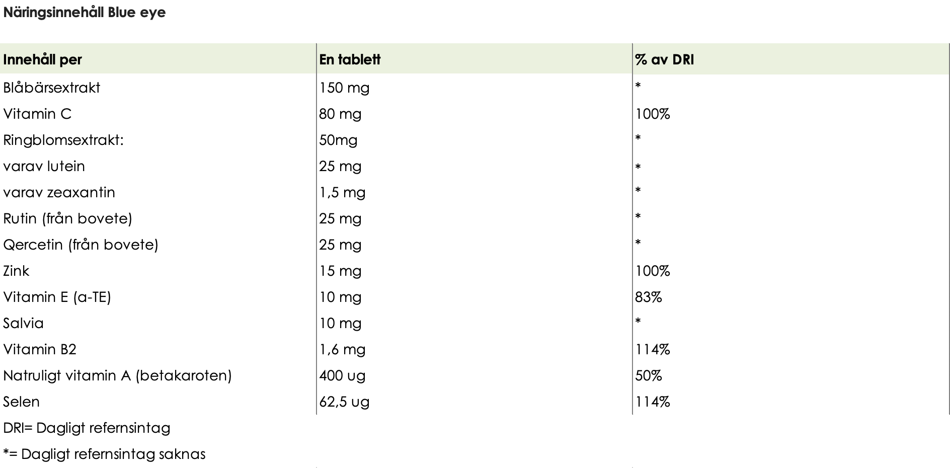 • En rad antioxidanter som alla har en viktig funktion i ögat