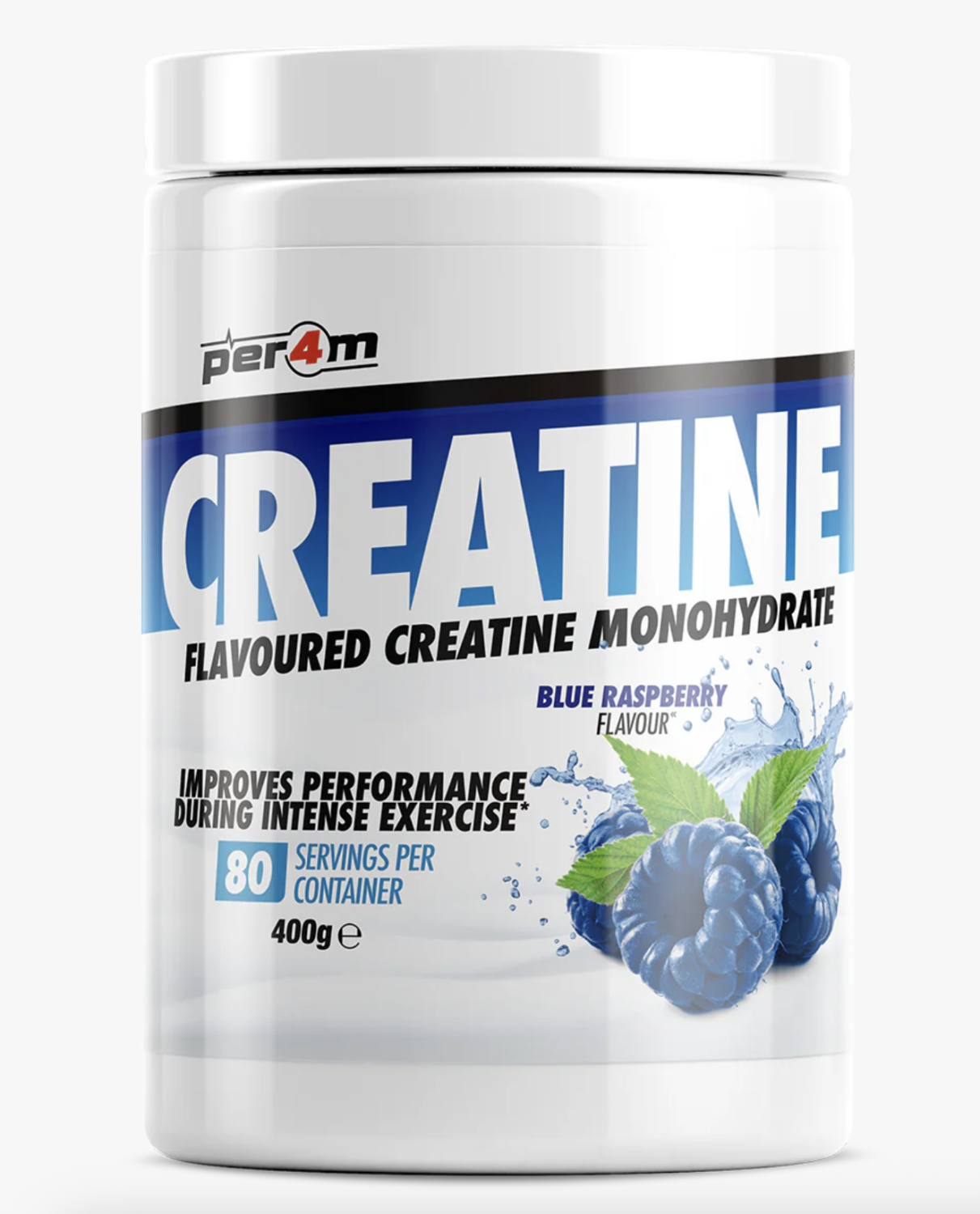 Per4m Blå Hallon Kreatin kombinerar en klassisk, djärv smak med kreatinets prestationshöjande kraft. Den söta och syrliga smaken gör varje portion njutbar samtidigt som den stöder dina energi- och träningsmål.