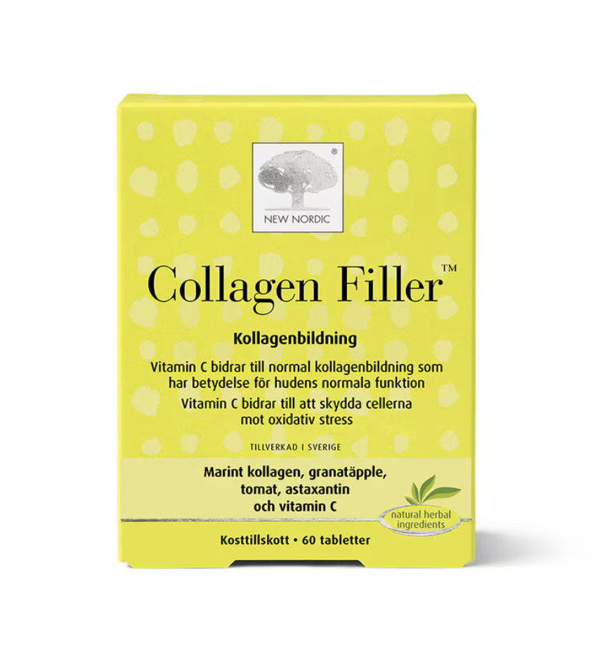 Skin Care™ Collagen Filler är en hudvårdstablett som verkar inifrån. Fungerar som ett tillägg till din dagliga hudvårdsrutin. Baserad på marint kollagen från fisken tilapia samt ett standardiserat extrakt av granatäpple, tomatextrakt och astaxantin (en karotenoid).