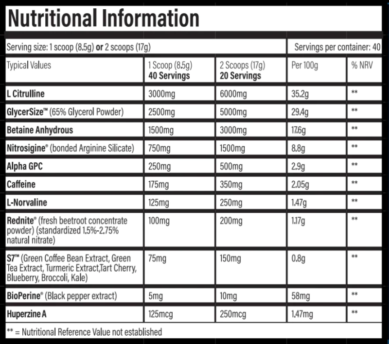 Tbjp har ökat något på doseringarna, och har lagt till Rednite för en utökad pump! Detta kommer från patenterade rödbetor, ett kraftfullt nitrat som höjer kväveoxiden i kroppen, och även från den otroligt effektiva Raw S7, som ytterligare ökar kroppens egen kväveoxidproduktion.